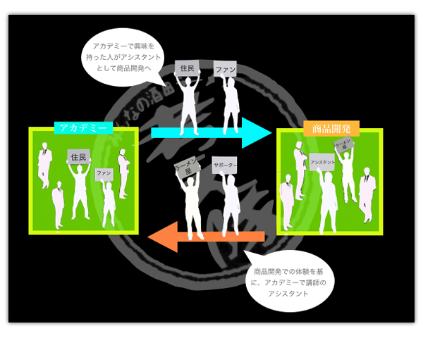 また、お土産品ラーメン商品開発と、この酒らーアカデミーを組み合わせる事により、以下の様な循環を図ります。